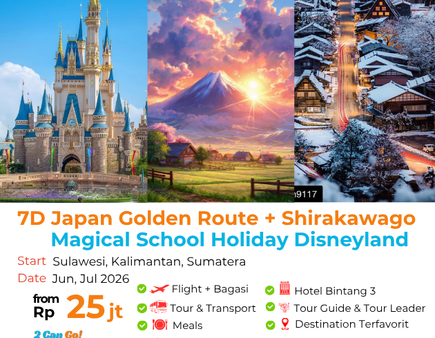 Paket ini dirancang fleksibel, dengan beberapa free program & optional tour, sehingga peserta bisa menikmati Jepang sesuai gaya liburan masing-masing.