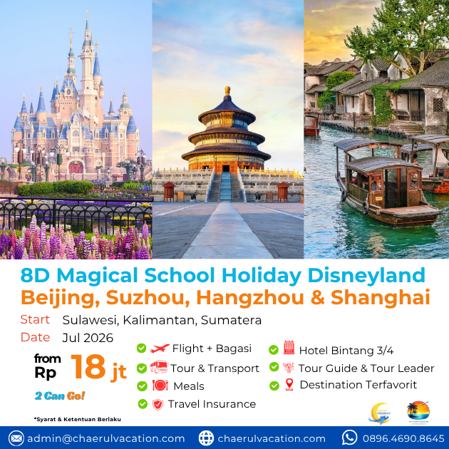 Jelajahi Beijing, Suzhou, Hangzhou, & Shanghai selama 8 hari penuh keajaiban! Sudah termasuk tiket Disneyland Shanghai yang ikonik! 😍