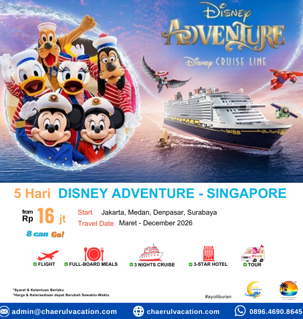 Bertemu langsung dengan karakter Disney favorit, nikmati hiburan kelas dunia, dan pengalaman cruise mewah yang seru untuk anak & dewasa ๐โจ